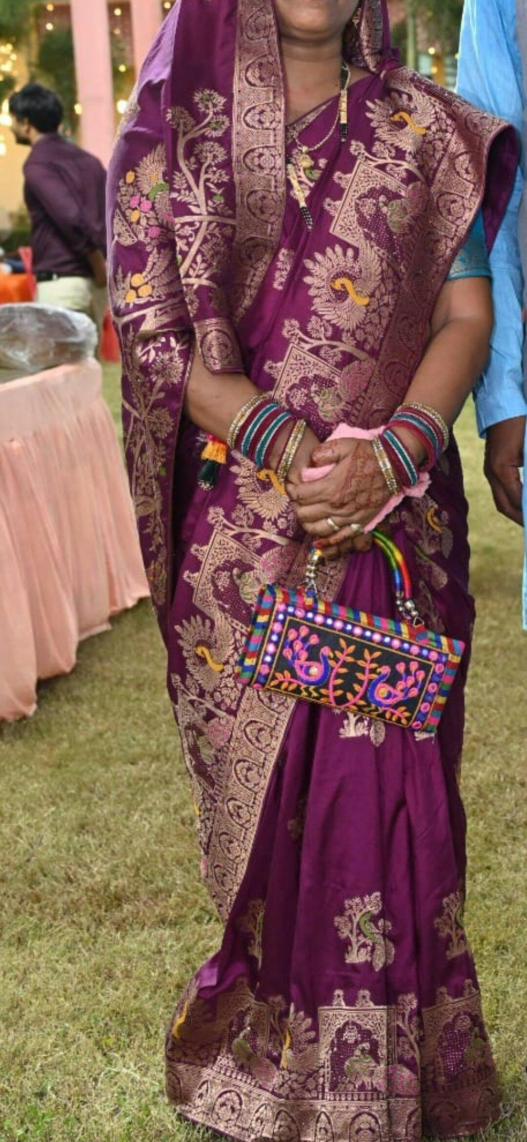 Saree Work: Hand Dyed, Woven (Zari & Triple Meenakari), Swarovski Work